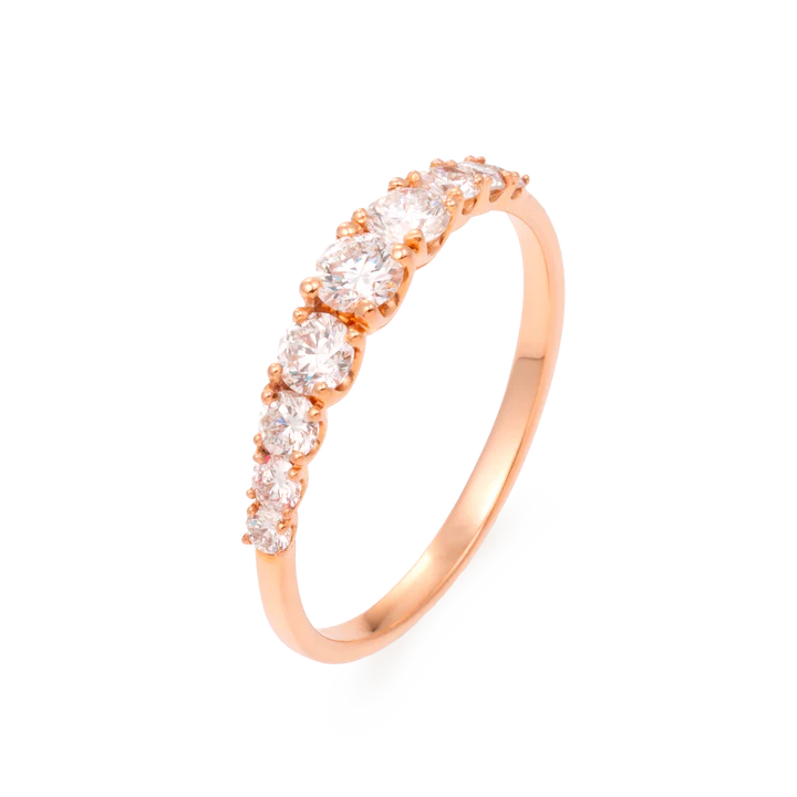 Claridad SI 0.65 Ct, 9 piedras Materiales: Oro rosa 18K, diamante color GH