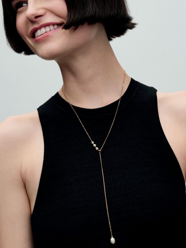 Collar Colgante Perlas Cultivadas de Agua Dulce                                                                                                                                    Materiales: Perla cultivada de agua dulce tratada y recubrimiento en oro de 14k