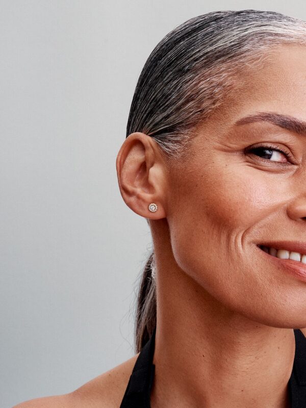 Pendientes de Botón Halo Redondo en Pavé Materiales: Circonita cúbica, cristal artificial y recubrimiento en oro de 14k